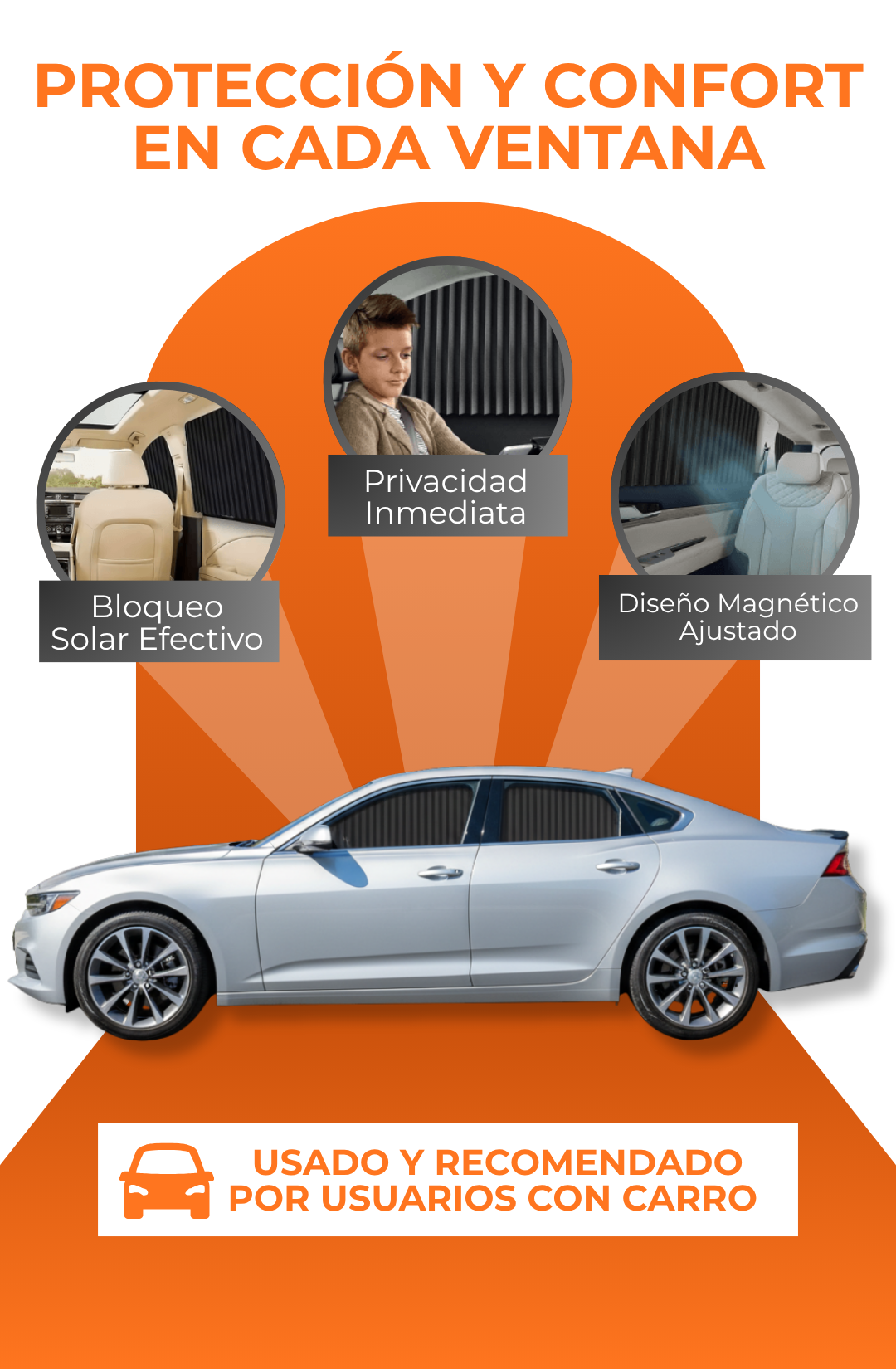 ✓ Pensado para quienes pasan horas en el auto – Ideal para conductores, padres, viajeros o cualquier persona que quiera más confort y privacidad mientras se desplaza.