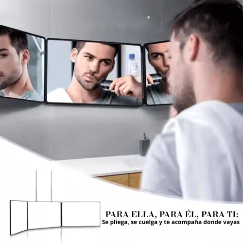 Transforma tu cuidado personal o servicio móvil con este espejo tríptico ajustable, diseñado para cortes de barba, retoques profesionales y maquillaje impecable. Equipado con ganchos telescópicos para puertas, ángulo regulable, y versión con luz LED para un acabado definitorio.